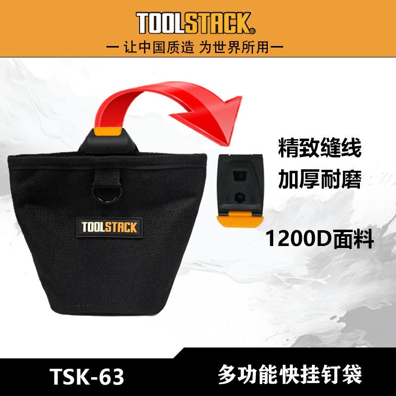 This quick-attach nail pouch is designed for construction professionals who need fast access to nails, fasteners, and hand tools on the job. Featuring a quick-release buckle or hook system, the pouch can be easily attached or removed from any standard tool belt or vest, allowing for flexible tool organization and task-specific setup.